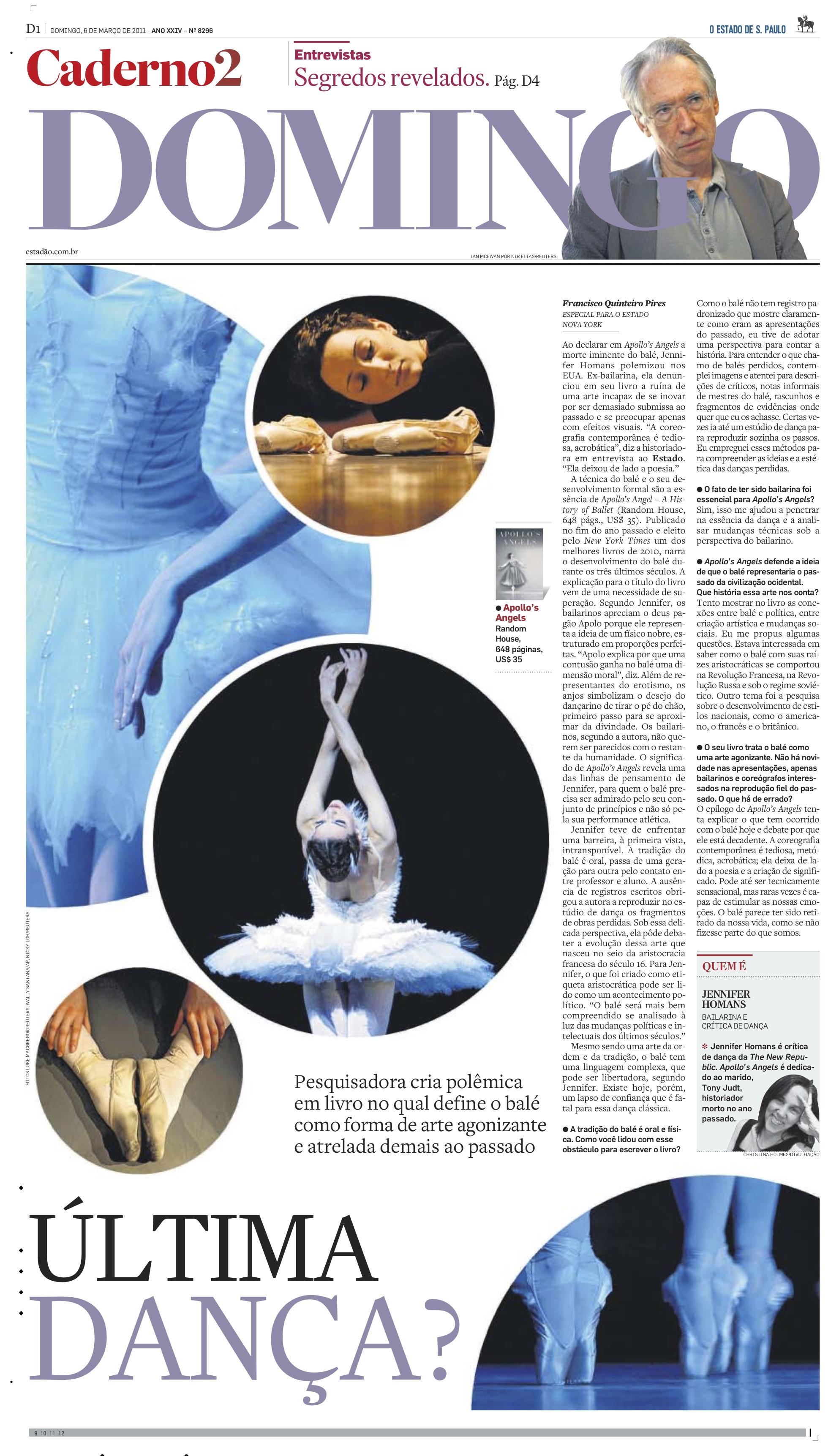 Leia a entrevista (em português) com Jennifer Homans, publicada no Caderno 2 do jornal O Estado de S. Paulo em 6 de março em 2011.