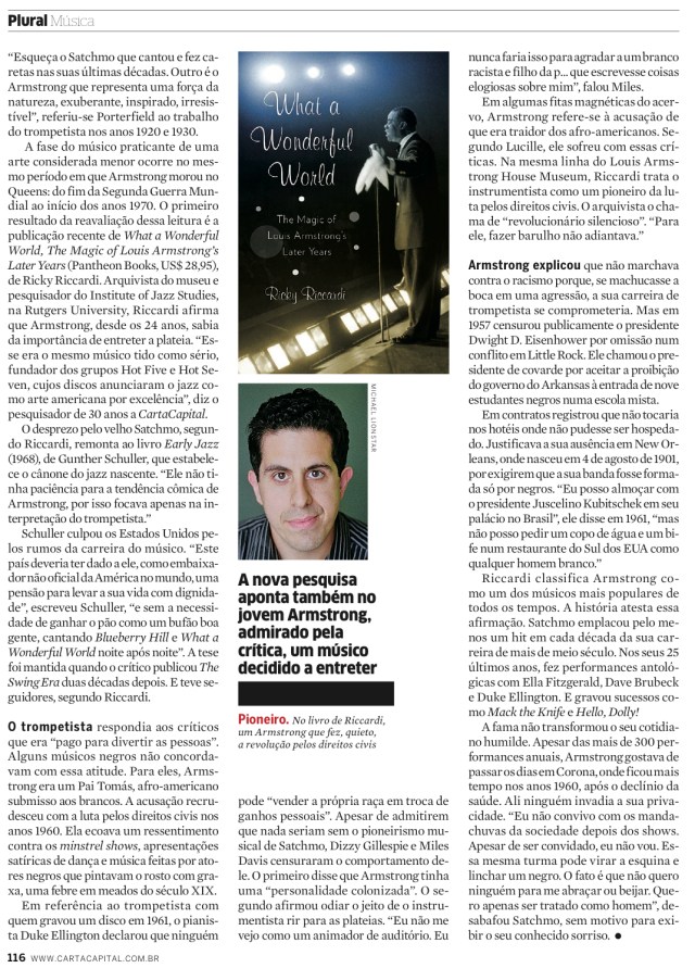 Leia reportagem sobre Louis Armstrong, publicada na edição 675 da revista Carta Capital Read a piece about Louis Armstrong published by Carta Capital magazine