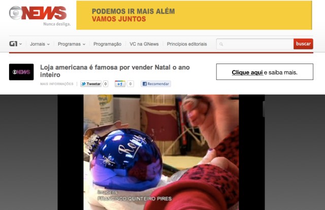 Veja reportagem para a GloboNews sobre a maior loja de artigos natalinos do mundo. É a Bronner’s, localizada em Frankenmuth, cidade de Michigan conhecida como Pequena Bavária.