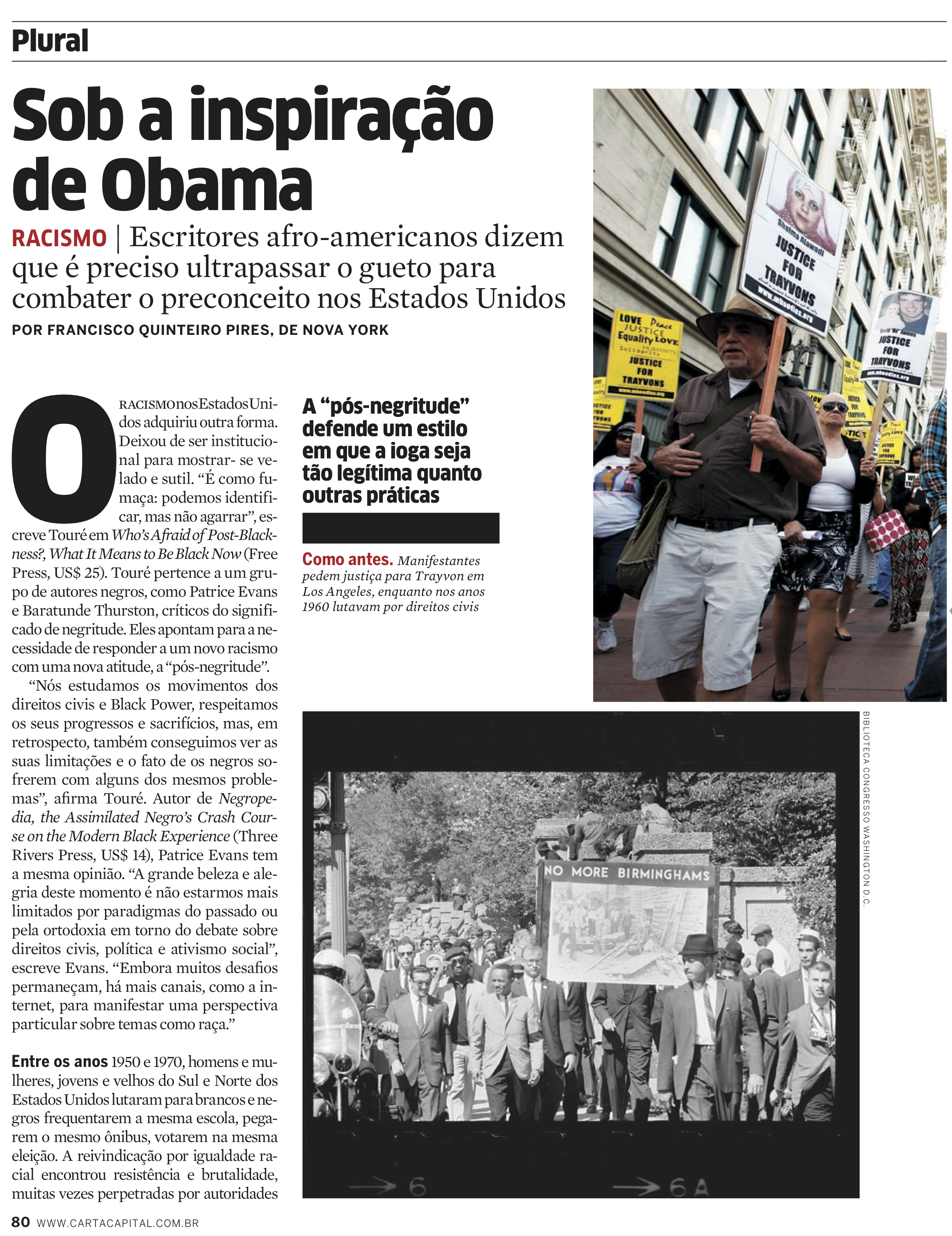 Leia reportagem sobre autores afro-americanos que discutem racismo e negritude nos Estados Unidos. Publicada pela revista Carta Capital Check a story about African-American writers who debate racism and blackness in the United States. Published by Carta Capital magazine