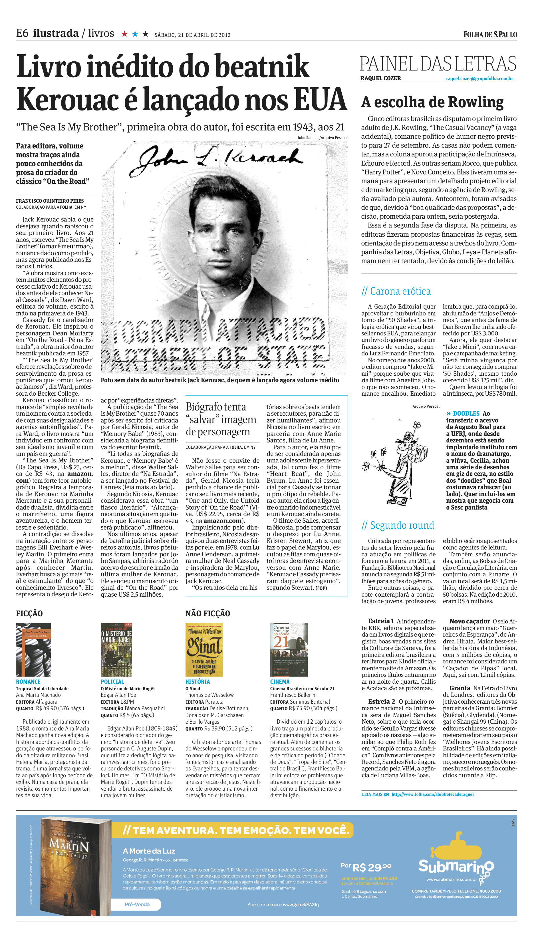 Leia reportagem sobre The Sea Is My Brother, o primeiro livro de Jack Kerouac. Publicada pelo jornal Folha de S. Paulo Check a story about The Sea Is My Brother. Published by Folha de S. Paulo newspaper