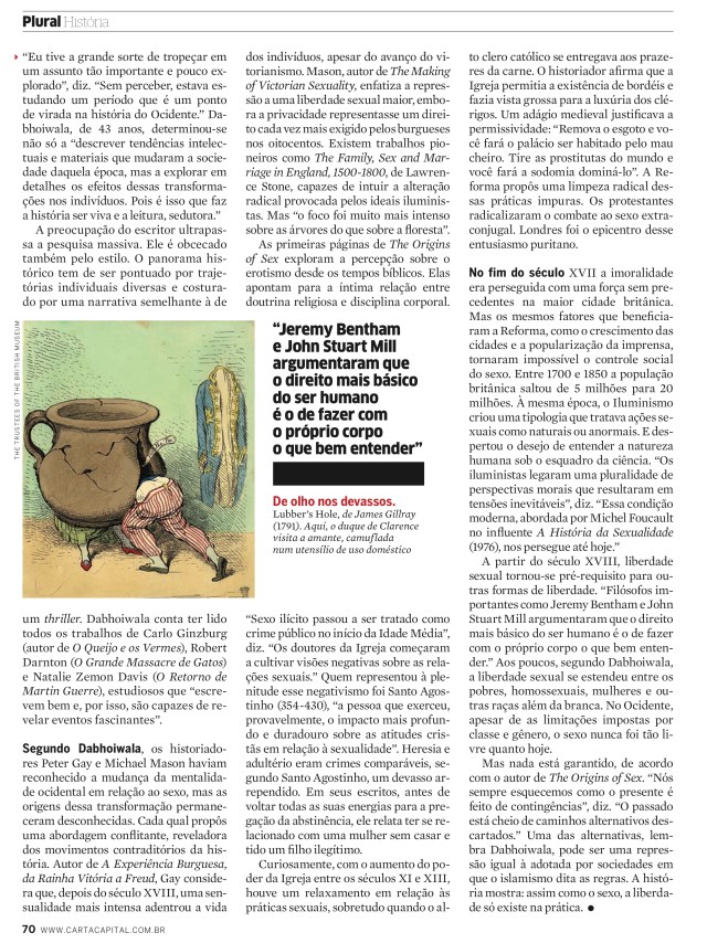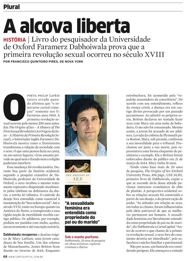 Leia texto sobre o livro The Origins of Sex, do historiador Faramerz Dabhoiwala. Publicado pela revista Carta Capital Check an article about The Origins of Sex, book by historian Faramerz Dabhoiwala. Published by Carta Capital magazine