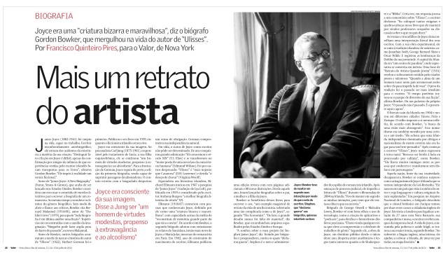Check a piece about a new biography of James Joyce written by Gordon Bowker. Published by Valor Econômico newspaper